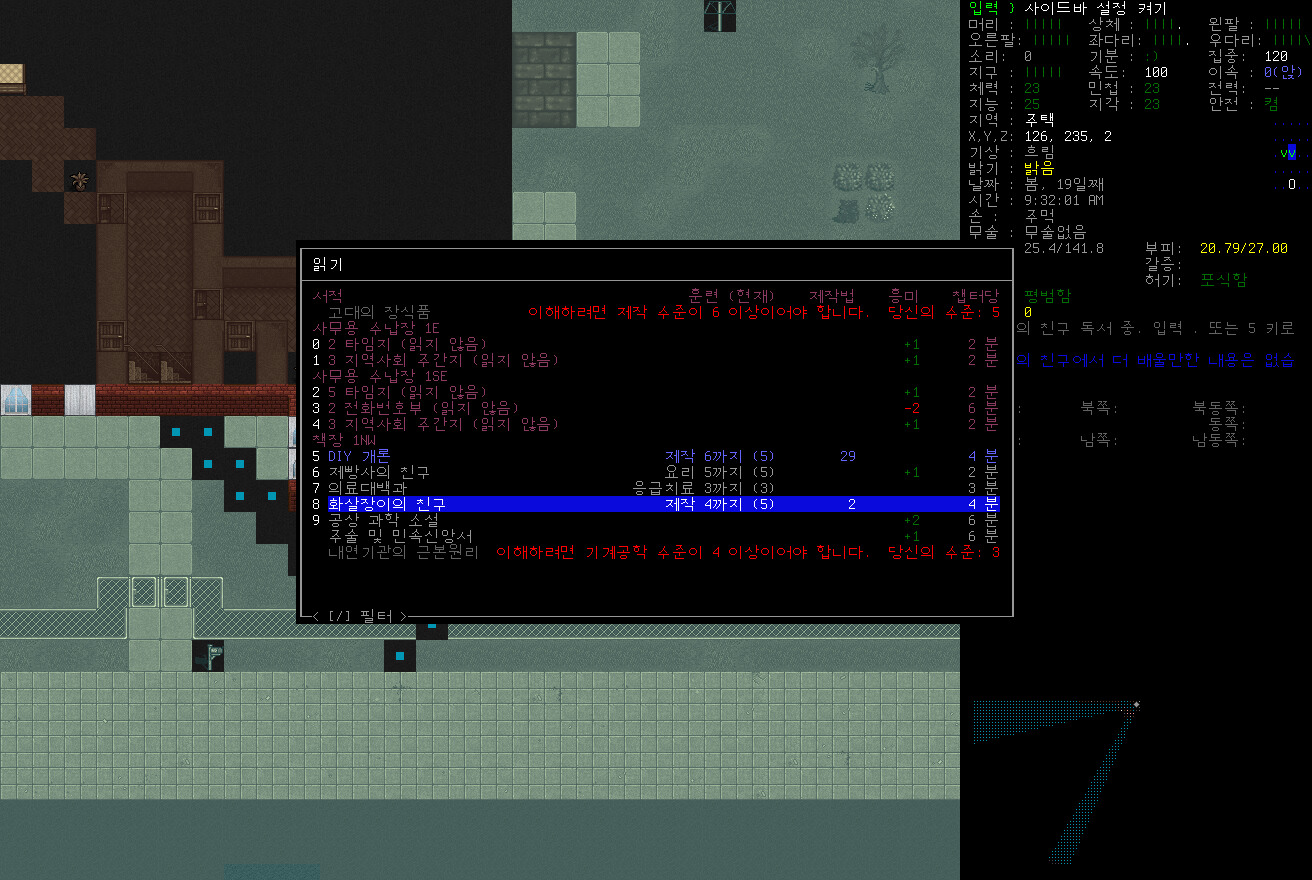 먼저 했던 좀보이드와 큰 차이점이라면, 게임상으로 이미 전기가 끊긴 상태라 TV를 통해서 는 기술을 얻을 수 없고 100% 책으로만 가능하는 점,